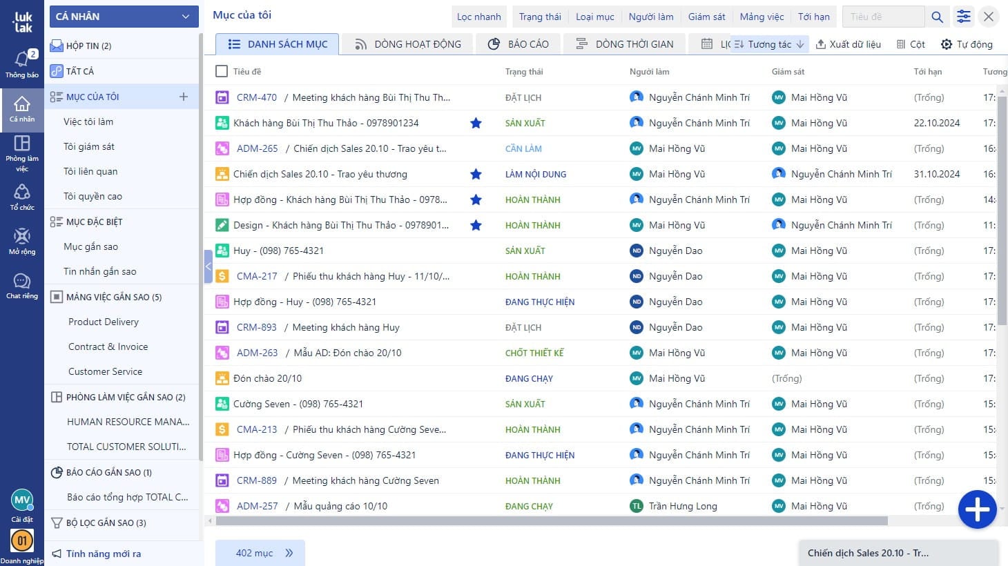 Một cá nhân có thể có nhiều công việc và dữ liệu phân tán ở nhiều nơi khác nhau trong văn phòng hoặc phòng làm việc, việc phải tìm kiếm qua lại sẽ mất nhiều thời gian. Cá nhân cho phép kéo mọi đối tượng công việc quan trọng về một nơi tập trung cho riêng mình. Đường tắt nhanh chóng, không bị ngập thông tin.